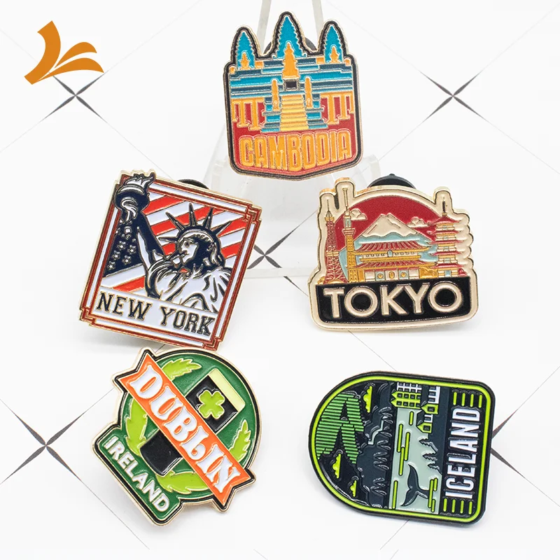 Zásobujeme Moderní Vysoká kvalita sponky na saka Design kovové logo Na zakázku měkké emalirování sponky do měst v